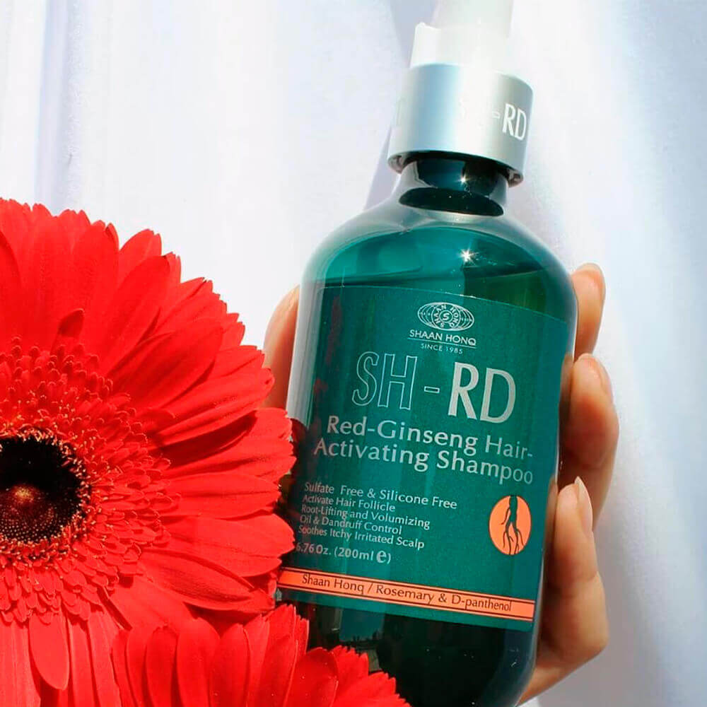 Активирующий шампунь с экстрактом красного женьшеня SH-RD Red-Ginseng Hair-Activating Shampoo укрепляет волосы у корней, тщательно очищает, стимулирует активность фолликул, ускоряет рост, борется с ломкостью и запускает процесс восстановления. Содержит экстракты красного женьшеня, зелёного чая и ройбуша, натрий РСА, масло ромашки и пантенол.