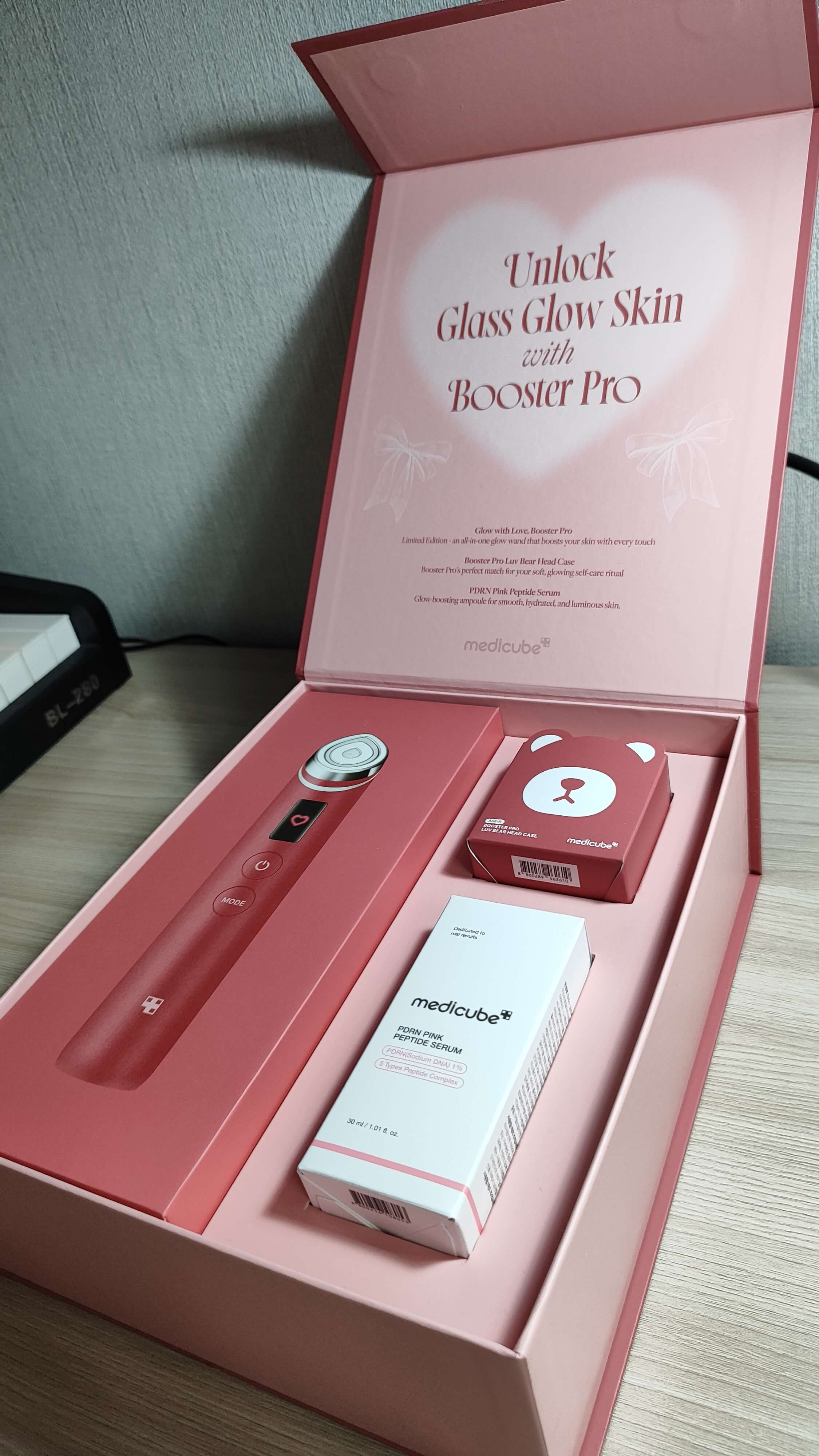 Лимитированный набор medicube Booster Pro Special Edition Set — эксклюзивный бокс с бестселлерами бренда. Содержит микротоковый аппарат и колпачок в форме медвежонка приглушённого красного оттенка, а также полноразмерную лифтинг-сыворотку с ПДРН. Все средства повышают упругость и эластичность кожи, сужают поры, придают здоровое сияние. Красивая праздничная упаковка делает набор отличным подарком для себя и близких.