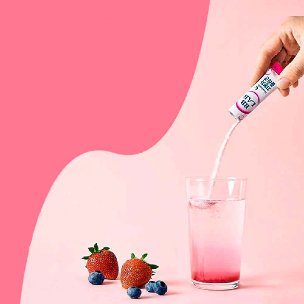 Низкомолекулярный рыбный коллаген, декстрин, глицин, порошок концентрата семи ягод (концентрат ежевики, концентрат чёрной смородины, концентрат черники, концентрат малины), DL-яблочная кислота, ароматизатор черники, порошок фруктового концентрата (декстрин, фруктовый концентрат), порошок корня свеклы, витамин C, ароматизатор клубники (декстрин, лактоза, искусственный ароматизатор, пектин), L-пролин, ферментировано-модифицированная стевия, диоксид силикона, никотинамид, смесь гиалуроновой кислоты (декстрин, гиалуроновая кислота), гидролизат эластина, сукралоза (подсластитель), порошковая смесь витамина A (декстрин, гуммиарабик, кукурузный крахмал, порошок ацетата витамина A, DL-альфа токоферол), смешанный порошок лактобацилл, дрожжи.