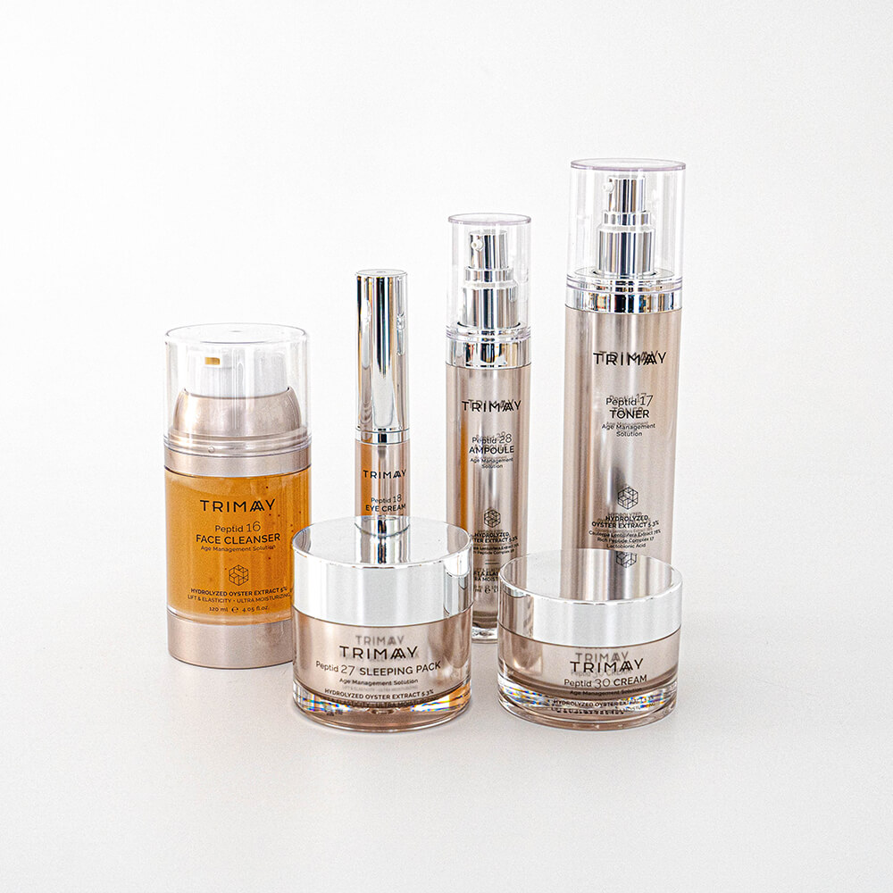 Антивозрастной тонер с пептидным комплексом Trimay Peptid 17 Toner глубоко увлажняет и питает, уменьшает выраженность морщин и замедляет процессы старения. Улучшает цвет лица, устраняет тусклость и делает тон лица более равномерным. Основу средства составляет экстракт зеленых водорослей. Содержит комплекс 16 пептидов, экстракт устрицы и лактобионовую кислоту.