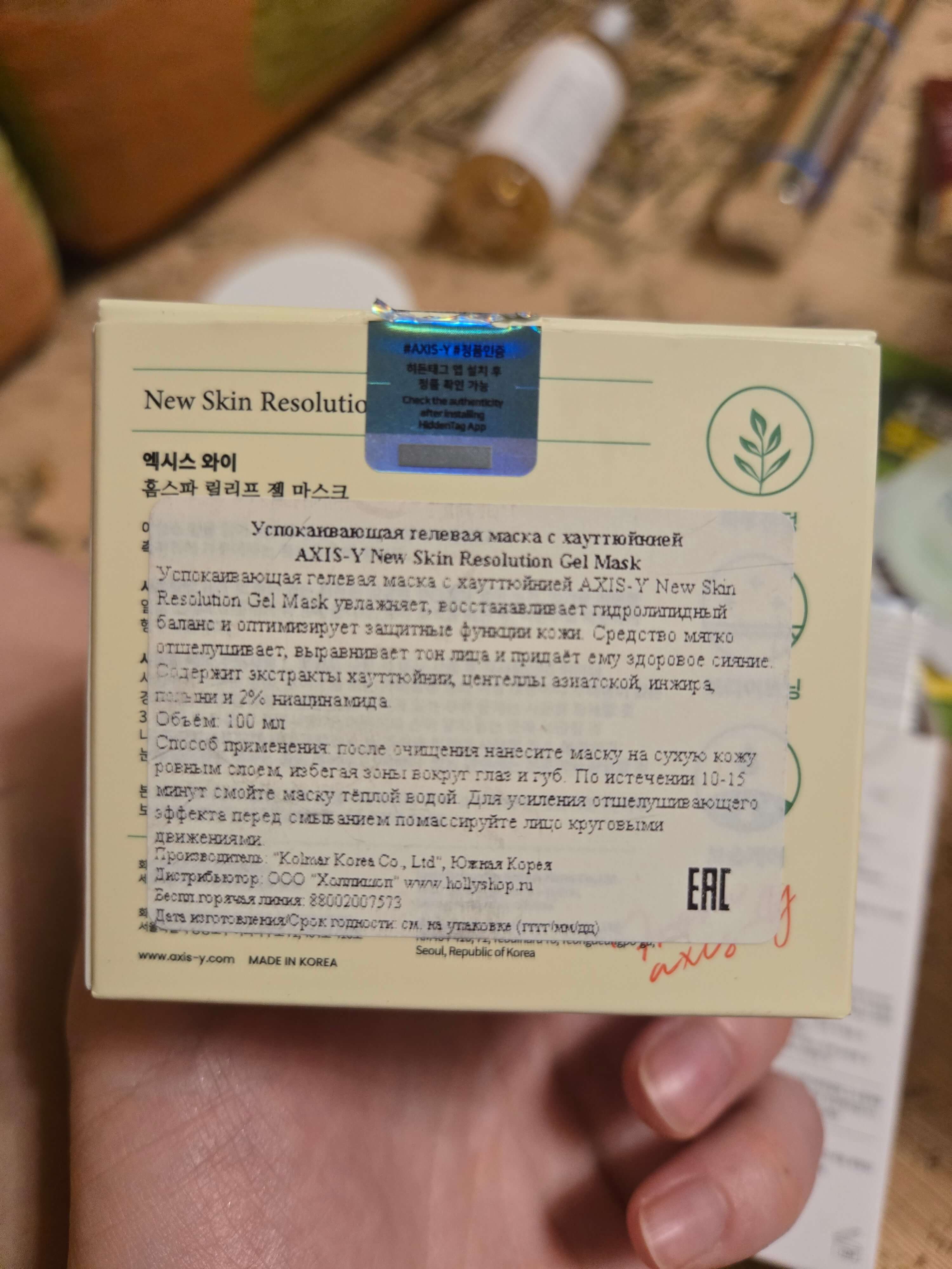 Успокаивающая гелевая маска с хауттюйнией AXIS-YNew Skin Resolution Gel Mask увлажняет, восстанавливает гидролипидный баланс и оптимизирует защитные функции кожи. Средство мягко отшелушивает, выравнивает тон лица и придаёт ему здоровое сияние. Содержит экстракты хауттюйнии, центеллы азиатской, инжира, полыни и 2% ниацинамида.