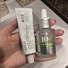 В общем сыворотка хорошо бороться с гнойничками и выравнивает тон
