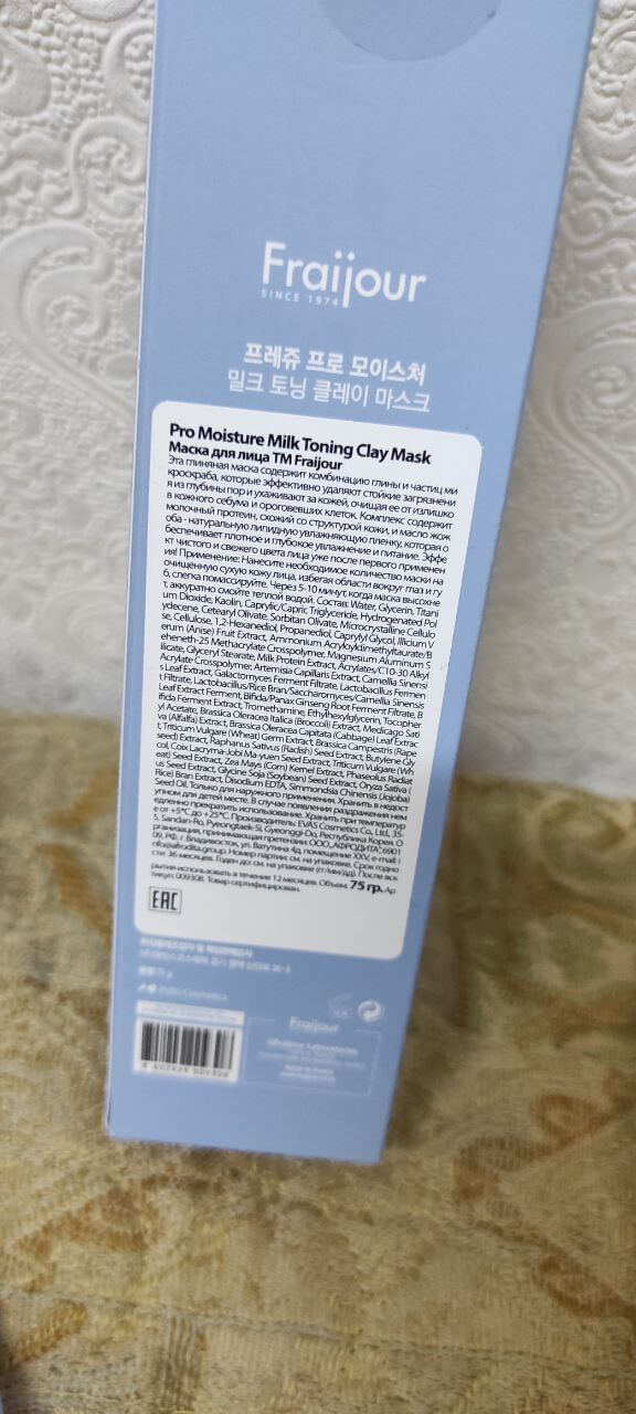 Увлажняющая глиняная маска с молочными протеинамиFraijour Pro Moisture Milk Toning Clay Maskобладает высокой абсорбирующей активностью, поглощает излишки кожного себума, сокращает выделения кожного сала и регулирует работу сальных желёз. Мягко осветляет и выравнивает общий тон кожи, хорошо увлажняет, избавляет от шелушений и смягчает огрубевшие участки кожи. Содержит комплекс пробиотиков, каолин, масло жожоба, семена бусенника и бобы маша.
