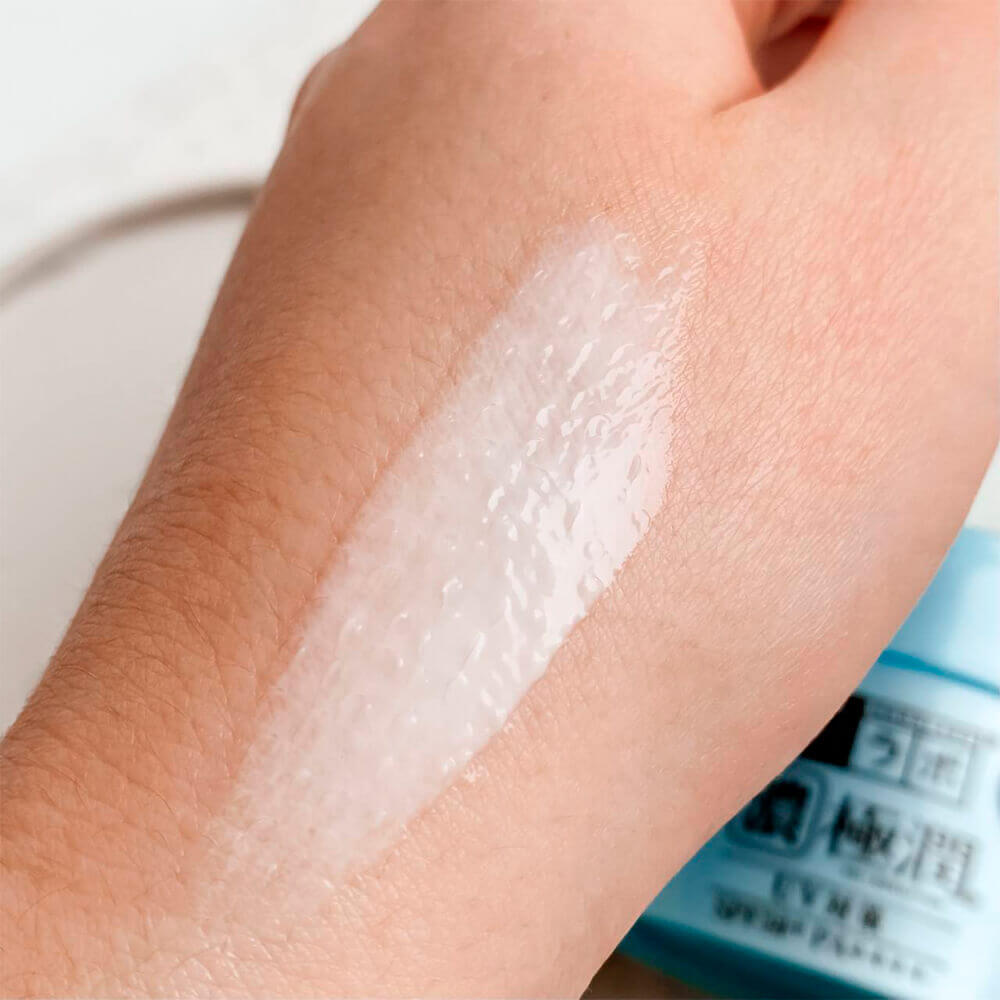 Лёгкий увлажняющий солнцезащитный крем для лица Hadalabo Gokujyun UV White Gel SPF50+ PA++++ прекрасно устраняет сухость, поддерживает оптимальный уровень влаги в клетках эпидермиса, нормализует гидро-липидный баланс.